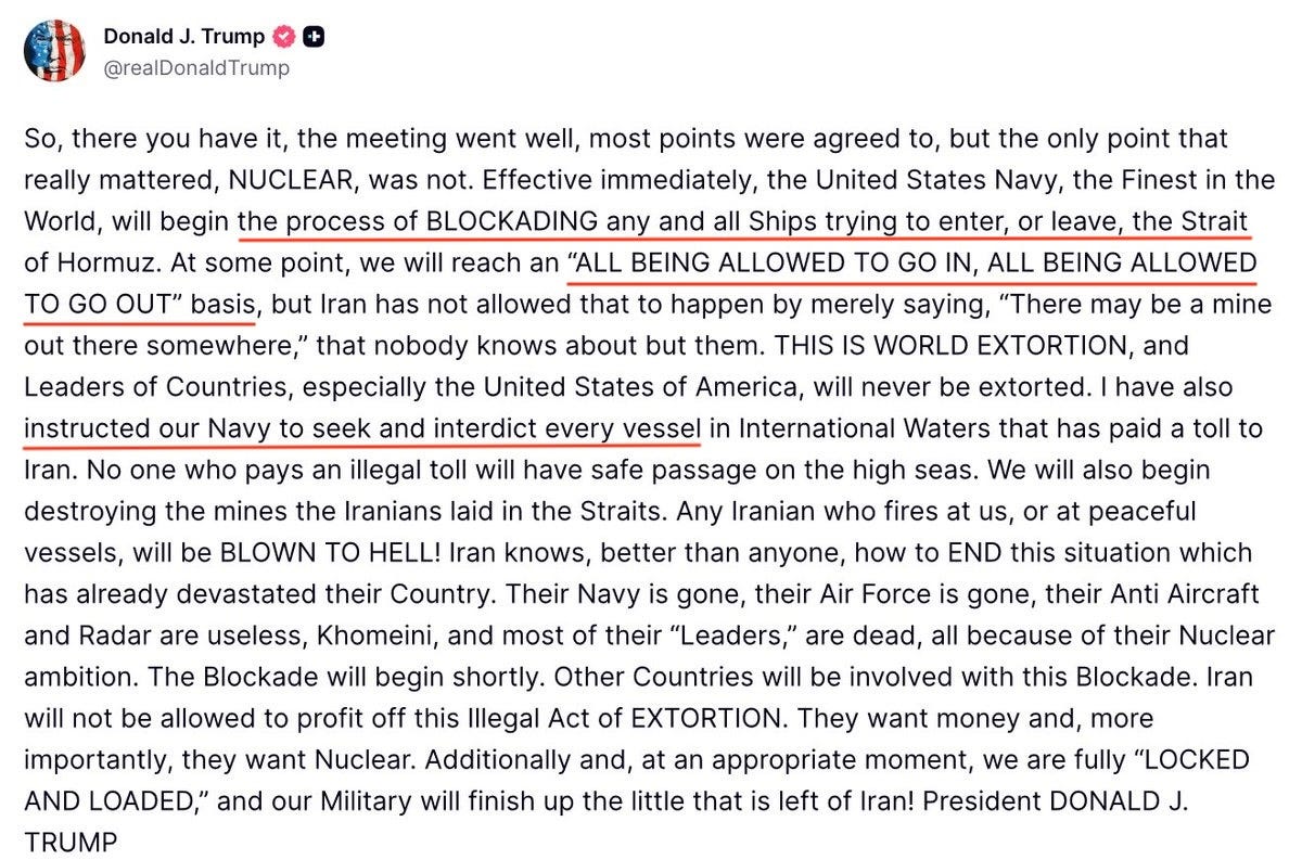 “If, however, Iran demands full control over the Strait and continues to deny select others the ability to use it, there remains the option ‘Open for All or Closed to All’ of blockading the waterway to deny Iran its benefits.